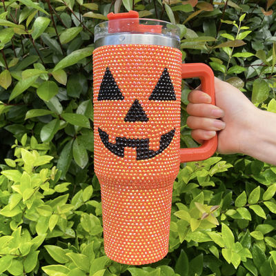 Design Halloween 40 oz Rhinestone Tumbler avec le motif de la citrouille et de l' acier inoxydable